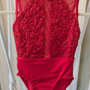 SA Preloved Solo Red Sequin Cut Out Leotard Zip Up Back Size SA