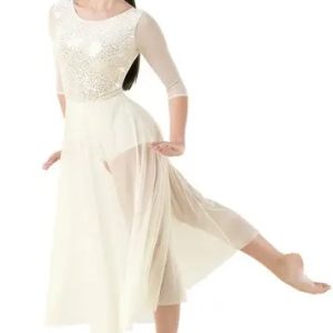 SA Preloved Solo Weissman Cream Sequin Mid Length Lyrical Costume Size SA