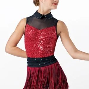 SA Preloved Solo Weissman Red & Black Collared Crystal Fringe Costume Size SA