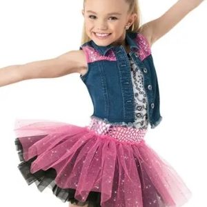 IC Preloved Solo Weissman Pink Denim Vest with Printed Bodice Tulle Skirt Size IC with Accessories