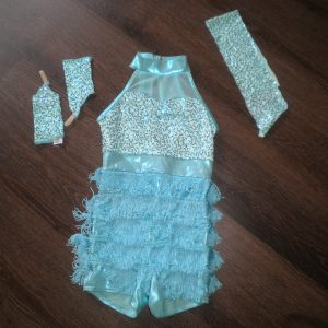 MC Preloved Solo Weissman Aqua Fringe Sequin Costume Size MC with Accessories Minor Fault