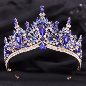 New Royal Blue & Gold Crystal Tiara (Code T299)