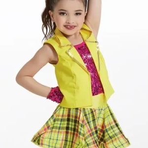 IC Preloved Solo Weissman Yellow & Pink Plaid Skirt with moto Vest Size IC NO HAIR BOW