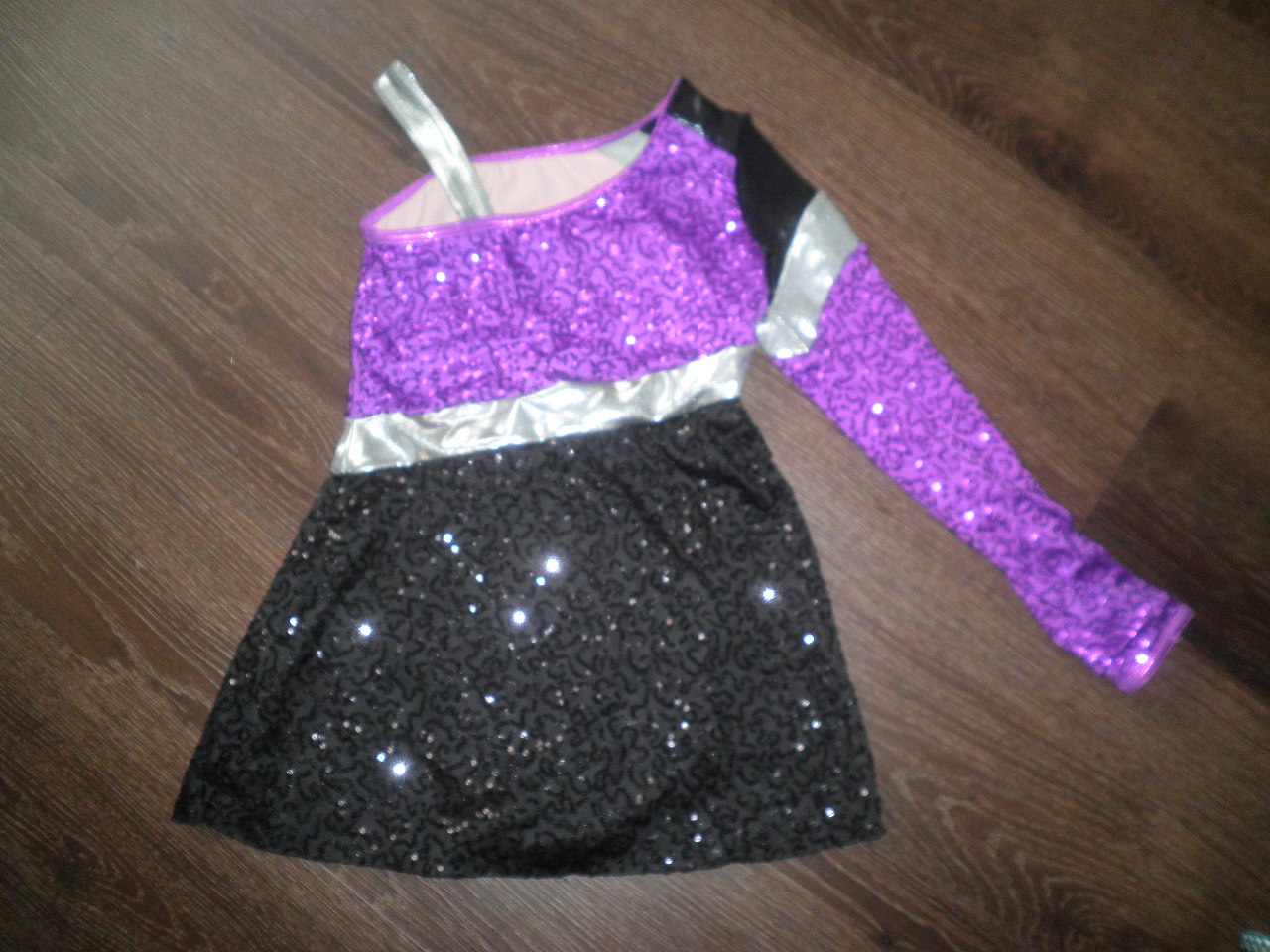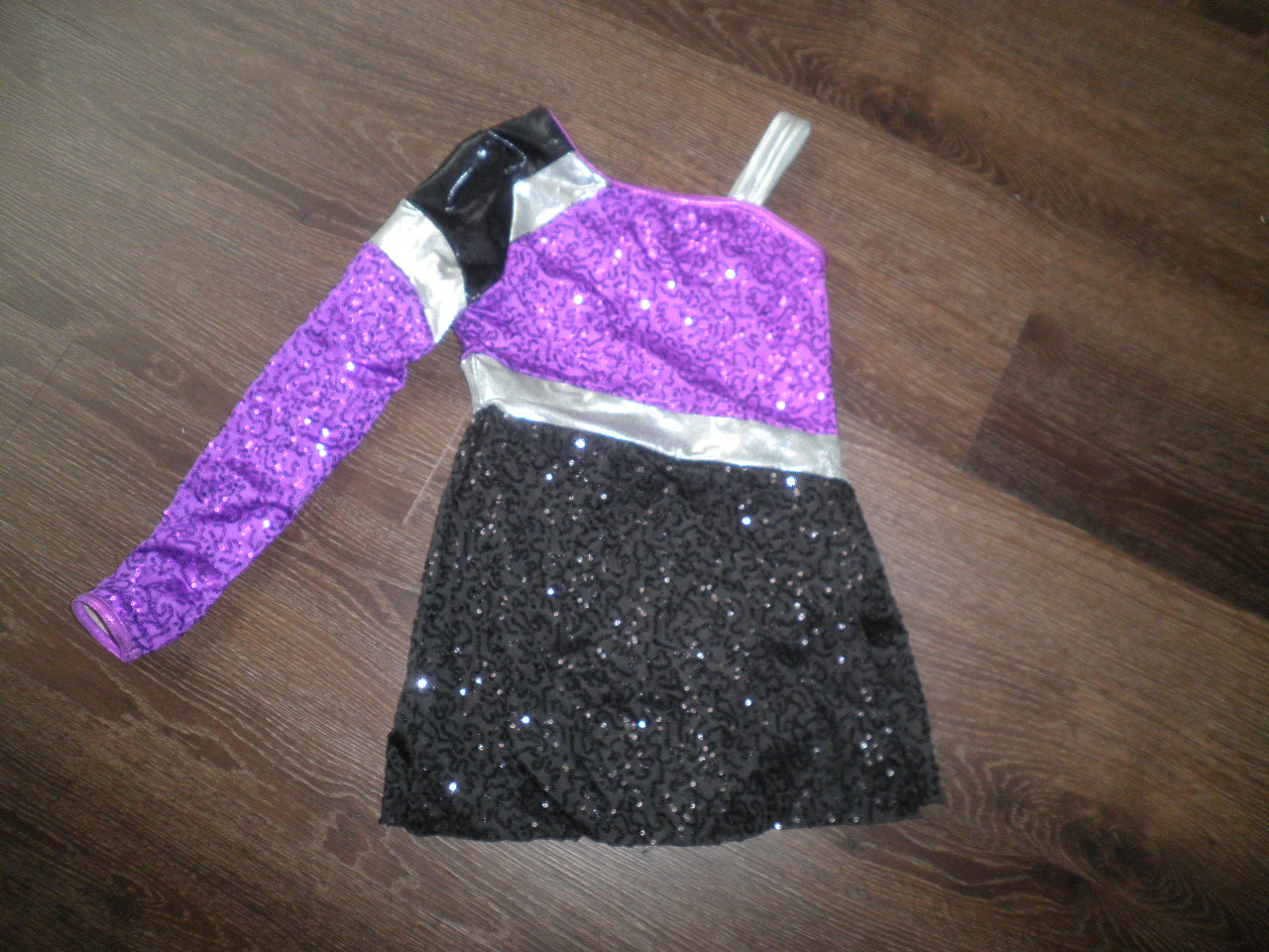 IC Preloved Solo Balera Purple, Black & Silver Cheerleader Costume Size IC with hair Bow