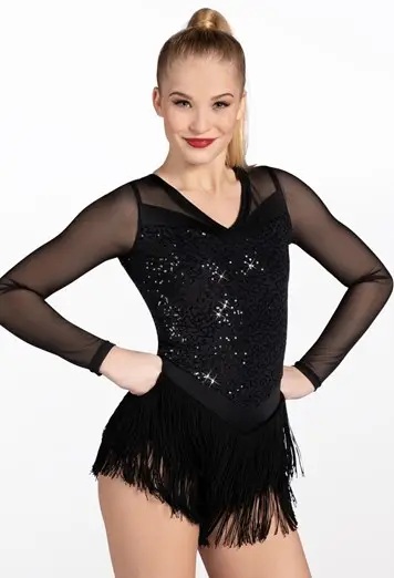 LC Preloved Solo Balera Black Sequin Fringe Costume Size LC