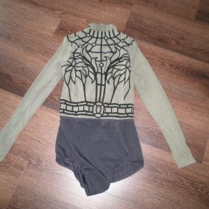 MA Preloved Solo Weissman Olive Green & Black Flocked Leotard Size MA Minor Adjustment