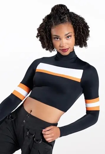 MC Preloved Solo Balera Orange & Black Long Sleeve Sporty Colourblock Crop Top Size MC