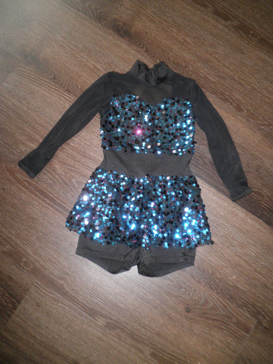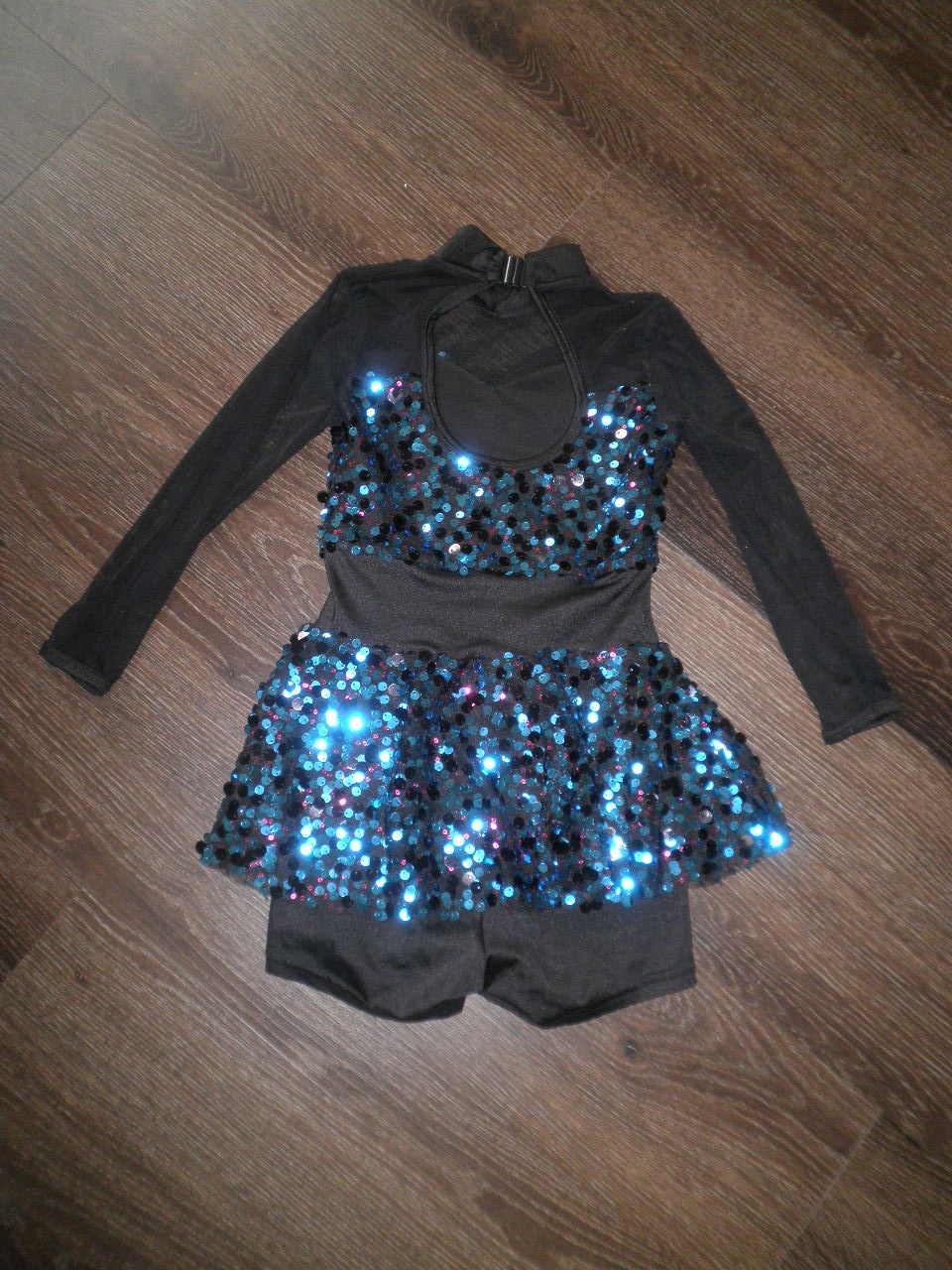 MC Preloved Solo Kinetic Black & Blue Sequin Mesh Unitard with Skirt Size G8