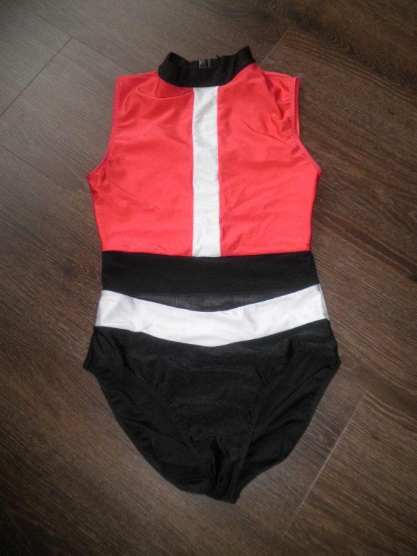 MC Preloved Solo Studio 7 Red, Black & White Mesh Leotard Size MC