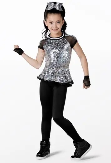 MC Preloved Solo Weissman Black & Silver Sequin Peplum Costume with Leggings Size MC No Accessories