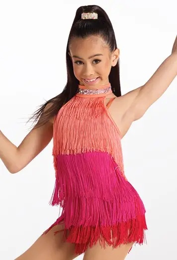 MC Preloved Solo Weissman Coral, Pink & Red Tri Coloured Fringe Costume Size MC No Hair Accessory