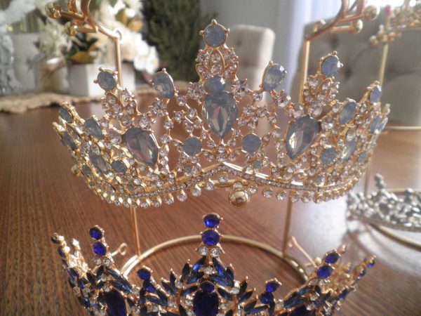 New tiara as per photo. Very pretty and these are smaller than other tiaras so more suited for child. Approx 4.5cm high. 2 side combs. Second photo tiara is shown at bottom of stand.