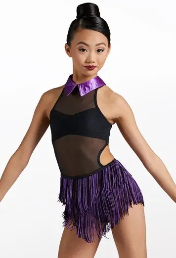 SA Preloved Solo Weissman Purple & Black Satin Collar Fringe Costume Size SA