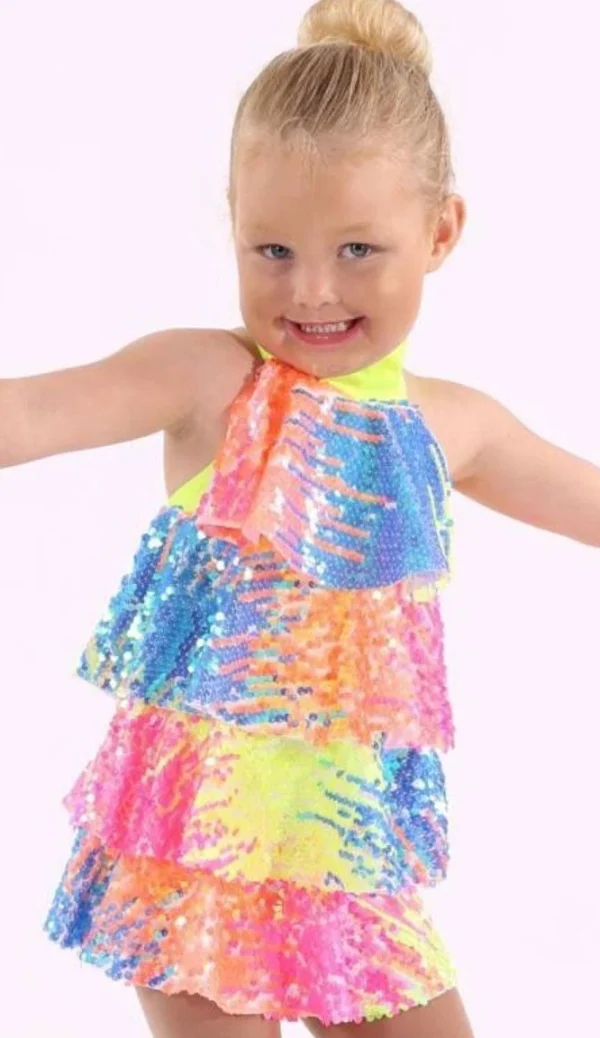 XSC Preloved Solo Kinetic Soda Pop Multi Coloured Layered Sequin Costume Size G4